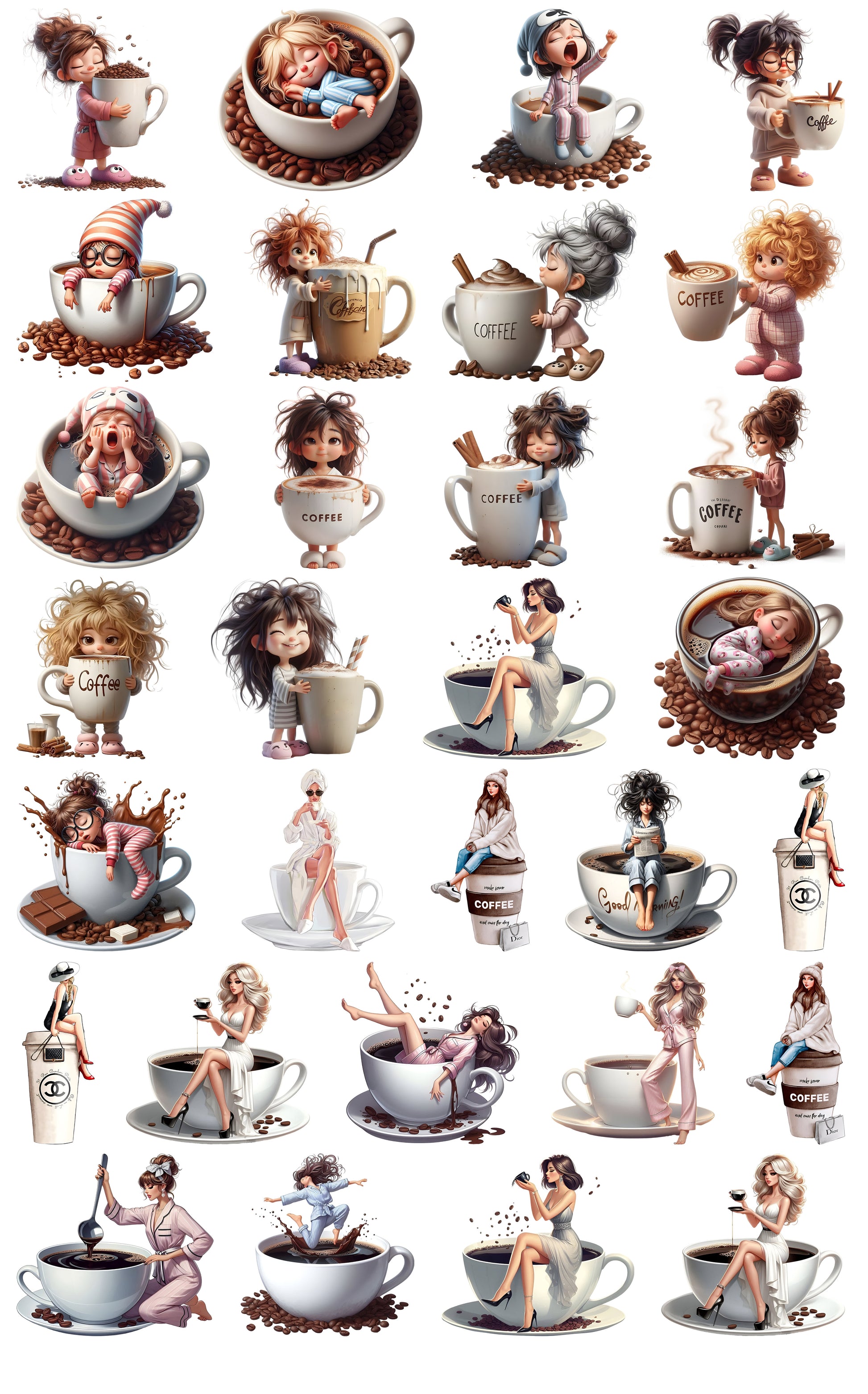 KAHVE AŞKI DTF SET-5 (8 cm - 30 Adet)